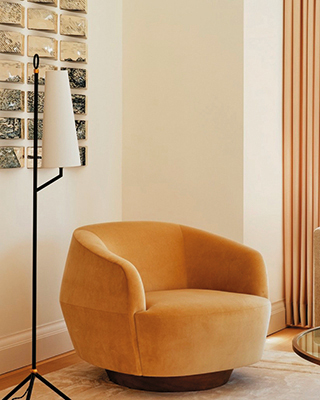 Holly Hunt 的 Sumo Lounge Chair,飽滿穩重的輪廓營造如相撲力士般紮實卻柔軟的存在感。低重心座面與包覆感十足的椅背,讓身體自然沉入、完全放鬆。覆以飽和溫潤的芥黃色面料,如灑落室內的日光,成為客廳、臥室或私人書房中最亮眼、也最令人流連的舒適角落。(易雅居)