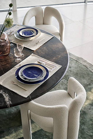 Giorgetti 以 Floria 系列為節慶氛圍增添優雅光彩,延續巴黎知名設計工作室Pierre-Yves Rochon在國際奢華設計界的永恆印記。雲紋大理石桌面,如花朵般綻放的和諧線條,在大理石桌面細緻的雕刻與四角的圓潤倒角中悄然綻現。深酒紅色皮革桌腳穩重典雅,彷彿冬日爐火旁的聖誕紅與雪白相映,為聚會帶來溫度與儀式感。(易雅居)
