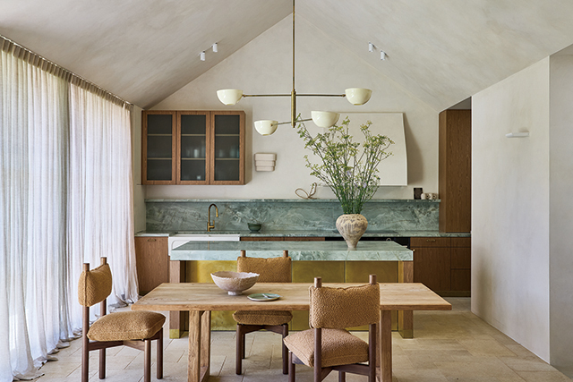 冬季的暮光帶來柔和沉降的力道,日光逐漸收束,空間色階轉向深暖與安定。光線趨弱,色彩越能展現其厚度,而陶土色、焦糖褐和橄欖綠等低彩度暖色都是屬於這個時刻的色調。延續夕陽餘暉與火光映照的溫度,以溫潤內斂的光影質地構築冬天的靜謐層次。
