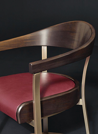Rachele 扶手椅散發義大利經典別墅沙龍的優雅氣質。靈感源於科莫湖畔別墅中的文學聚會場景,椅形語彙細膩傳達英式古典與現代奢華的融合。銅質框架細緻精工,椅背可選木質或皮革包覆,坐墊採真皮包襯,兼具雕塑感與舒適感。溫潤的銅質結構與柔潤皮革在光影中輝映,展現 Promemoria一貫的材質講究與文化底蘊。(易雅居)