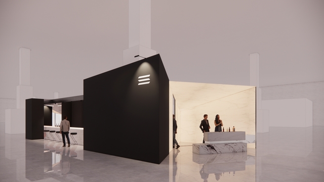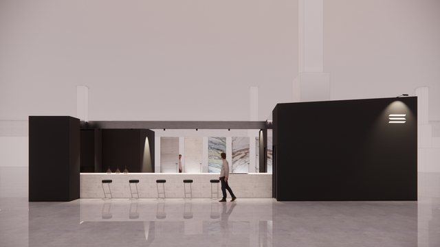 今年展場最吸睛的亮點,是以透光石材打造的「光之酒吧」。山恩再次把建材展變成一場情境派對:石材透出柔亮光線,即便手裡沒有酒,也能感受到光在空氣中擴散的微醺。