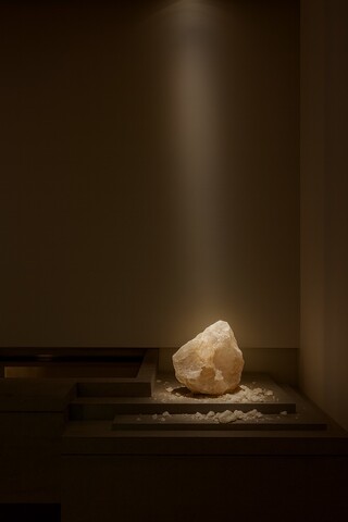這個場域並非單純展示工法,而是以光為語言,透光石材在照明與厚度的交疊下,呈現細膩層次,在此,石材不再是冷硬建材,而是具有情緒與場景感的生活媒介。