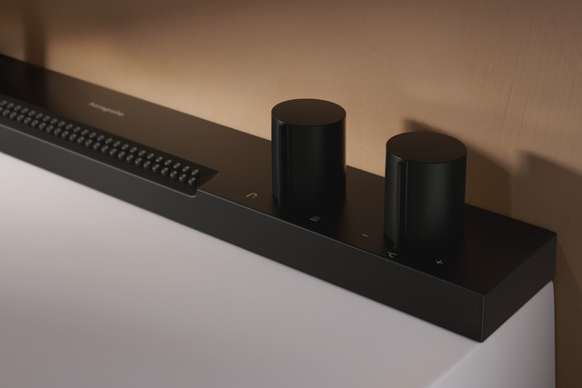 以「Raindance Alive淋浴系列」為例,其設計靈感源自建築結構與人體工學的融合,以俐落的幾何線條勾勒矩形主體,並搭配圓潤的花灑與旋鈕,展現剛柔並濟的設計張力。設計團隊更進一步,將傳統的互動介面昇華為產品表面不可或缺的「圖案」,其操作按鈕不再是突兀的功能標記,而是被無縫整合到物體的整體設計紋理中,成為引導使用者進行更直觀、更富情感交流的設計元素。「為水而設計始終是一場對話。」Andreas Diefenbach如此形容。