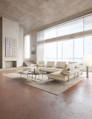 全新的JAZ沙發系列延續此一脈絡,透過輕量化結構和清晰輪廓,重新定義現代的存在價值,讓家具與環境形成更為開放的對話關係。巧妙利用充足的離地間隙,以及坐墊與纖細鋁製框架之間獨特的鏤空安排,引導光影在下方自由流動,創造開闊的穿透感。這樣的設計模糊了沙發正面與背面的界線,無論從任何角度觀看都同樣優雅。