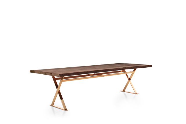 Pathos特別版餐桌以雷射切割青銅框架與實心義大利胡桃木桌面構成鮮明識別。