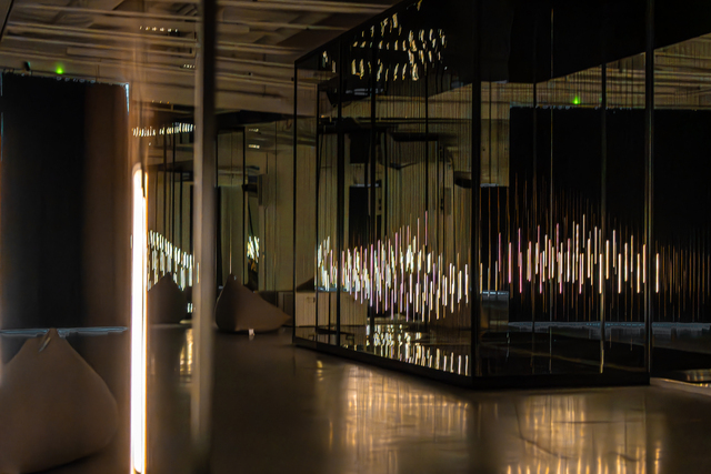 《像素力場Dynamic Field》由偏光鏡面、旋轉機構與燈光交織而成的巨大裝置。攝影」楊承