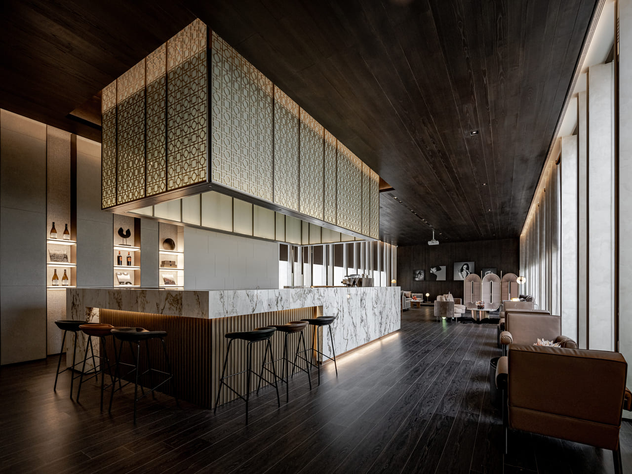 《TOP 31》接待中心不僅是展示與洽談的場所,更是一個交融自然綠境、精品氣質與城市韻味的篇章。在洗鍊的設計框架中,細膩展現溫度和情感,以一種從容自若的態度構築未來的日常想像。