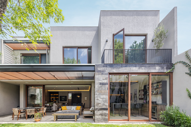 從設計初始,設計師便以「內外交融」為核心理念。建築透過大面積的滑動窗櫺,將庭園景致悄然引入室內,溫柔消弭居所與自然的界線。光線如流水般穿透空間,配合對流通風的設計,賦予住宅勃勃生機,勾勒隨時間流轉的光影韻律。