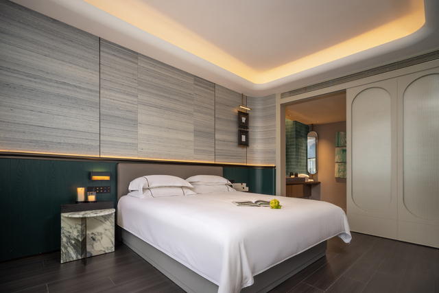客房定位精準對應三大主要客群:針對商務菁英客群,提出沉穩、專業、高效便捷的旅居屬性;婚慶客群則重視儀式感與浪漫氣息;高端休閒客群則致力彰顯雅致、具文化浸潤的輕奢體驗。空間在優雅中保持彈性,讓同一間房得以承載不同場景,充分展現「一室多境」的概念。