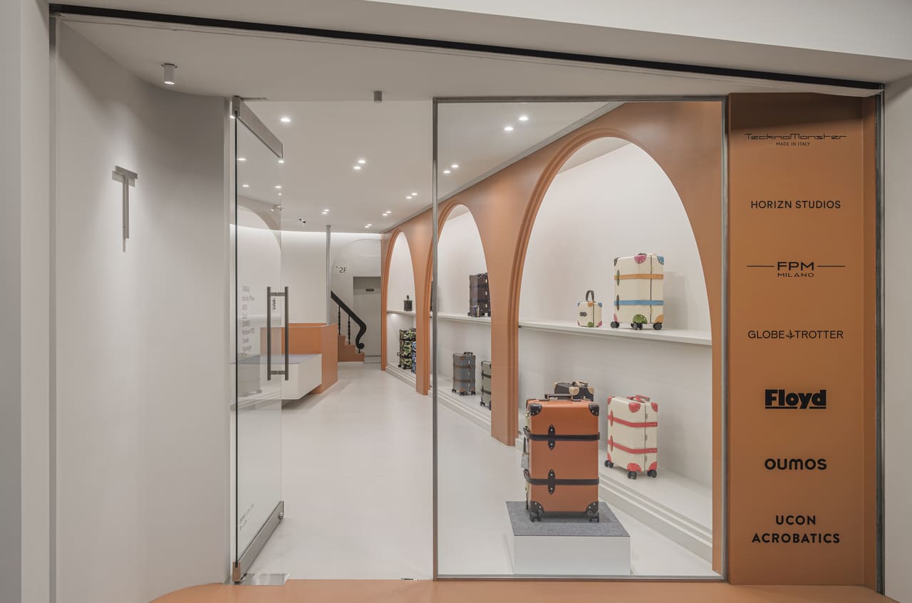 摺疊門板後可透過玻璃落地窗展示建築內部,引導過客的視線層層向內推進。