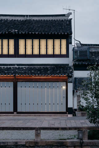 仿古的建築外立面加上由多塊木板並列的排門設計,從視覺喚起針對蘇州傳統沿街商舖的集體記憶。