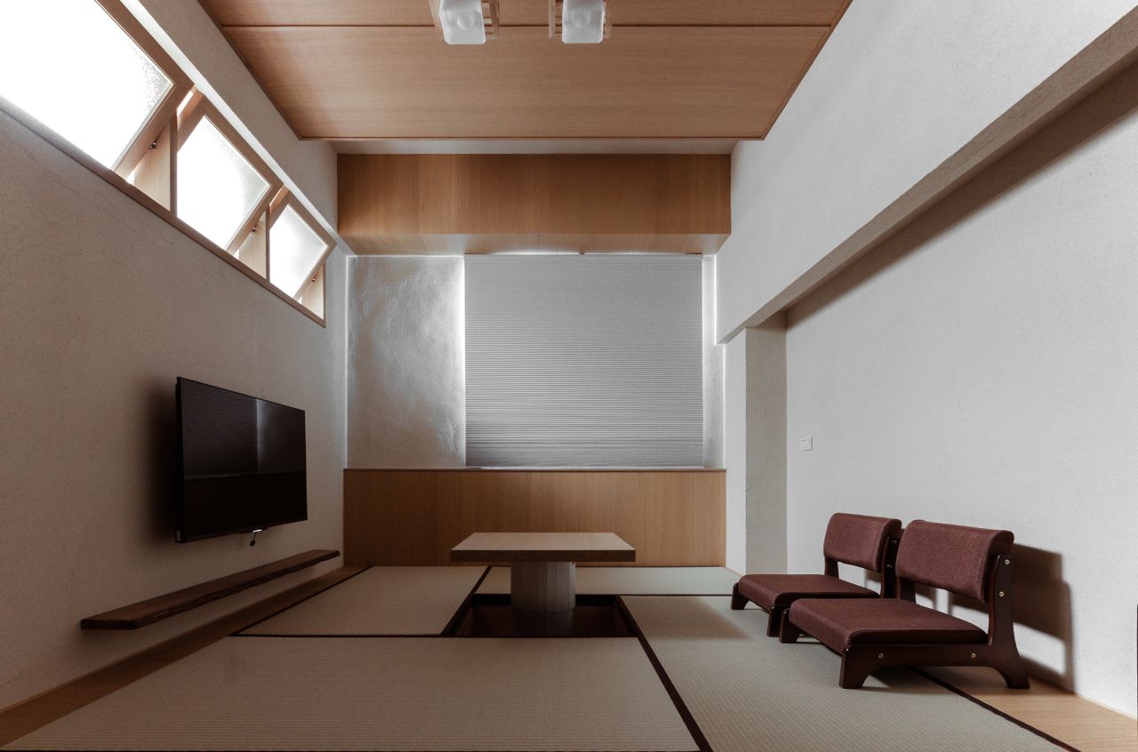 更衣間採用大幅木質平面,在上台前的短暫時光和緊繃情緒間,給予使用者安定心神的親膚感受。