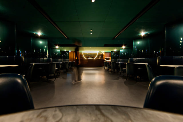 位於貴賓室內的「Captain's Bar」,為表演藝人休息及VIP觀眾等候入場所設,深色皮革座椅、沙發卡座和大理石紋桌面讓空間益顯奢華。