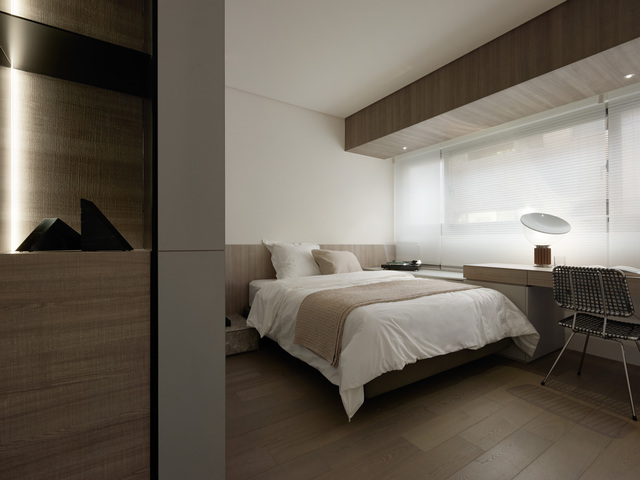 主臥動線底端規劃為更衣室,讓女主人擁有自然便利的日常起居,形塑層次豐富卻又保有隱密的休憩場所。