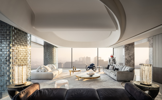 西安古城核心距城牆與永寧門僅150公尺,窗外便是長安城的千年肌理。本案即坐落於此,讓歷史景觀與當代生活在此直接對話。這樣的地理位置,在西安是絕無僅有的稀缺。因此,設計團隊以「古都新月、千年底蘊、活力再造」三元素,呈現其藝術與設計概念,為這座居所定調,構築與城市歷史產生深刻連結的高端住宅。