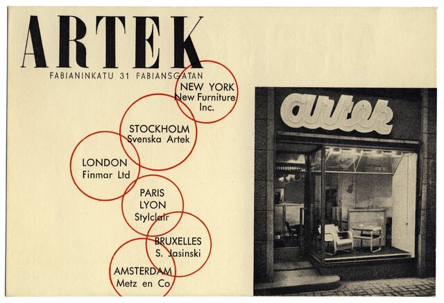 Artek的名稱源自「藝術」(Art)與「科技」(Technology)的結合,由阿爾瓦與愛諾.阿爾托及其友人在赫爾辛基創立。Artek不僅管理阿爾托家具出口、推廣優質家居產品,也在店中舉辦現代藝術展覽,成為當時前衛的室內設計藝術中心。