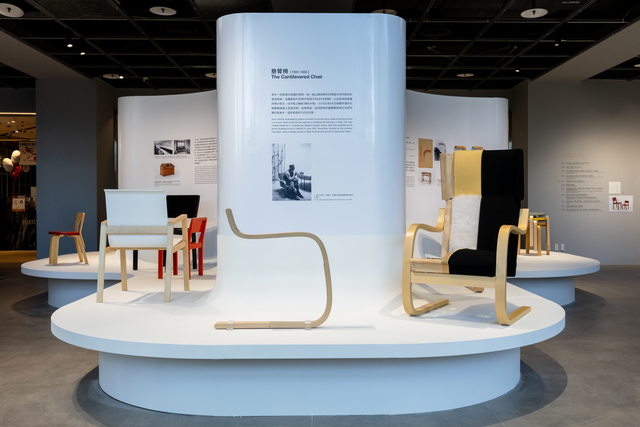 衛星展區聚焦阿爾托夫婦家具設計的實驗精神、專利技術與創新成果,並介紹其共同創立的設計品牌「Artek」。現場展出多件經典作品與設計結構物件,包括1930年代突破曲木技術極限的懸臂椅(The Cantilevered Chair)以及被譽為「圓凳之王」的60號圓凳(Stool 60)等,揭示他們如何以設計連結個人、家庭與國家文化價值,同時帶領觀者見證芬蘭現代設計跨越地域文化,延續發展近百年的雋永魅力。