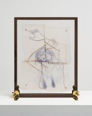 基里亞科斯・托波利迪斯,《書寫日記》,2024。壓克力顏料、油彩、照片轉印於畫布,150 x 170公分(含框153.3 x 173.3 x 4公分)。圖像由藝術家及Galerie Judin, Berlin提供。攝影:Trevor Good。