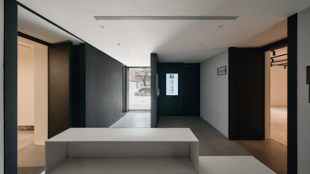 在南北翼之間的凹入空間置入低彩度的語彙,重塑具功能性的入口大廳。