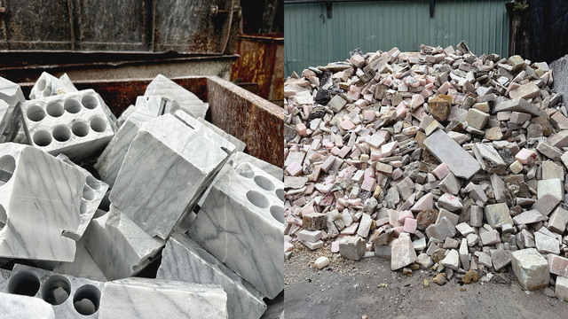 堆放在石材廠內的餘料。