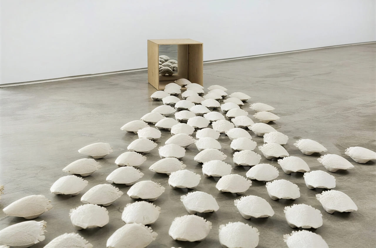 臺中市立美術館(以下簡稱中美館)2026年4月12日前推出開館首展《萬物的邀約》,由中美館策展團隊攜手台灣策展人周伶芝、美國策展人艾蕾娜.克萊爾.費爾德曼(Alaina Claire Feldman),以及羅馬尼亞旅居南韓策展人安卡.繆雷.金(Anca Mihuleţ-Kim)一齊策劃,呈現來自全球20國、超過70組藝術家的作品,涵蓋錄像、繪畫、雕塑、裝置、檔案、書籍等多樣媒材形式,其中更包含24件委託創作及現地製作,嘗試在跨世代及跨文化間,開啟一場關於人與環境關係的探索。
